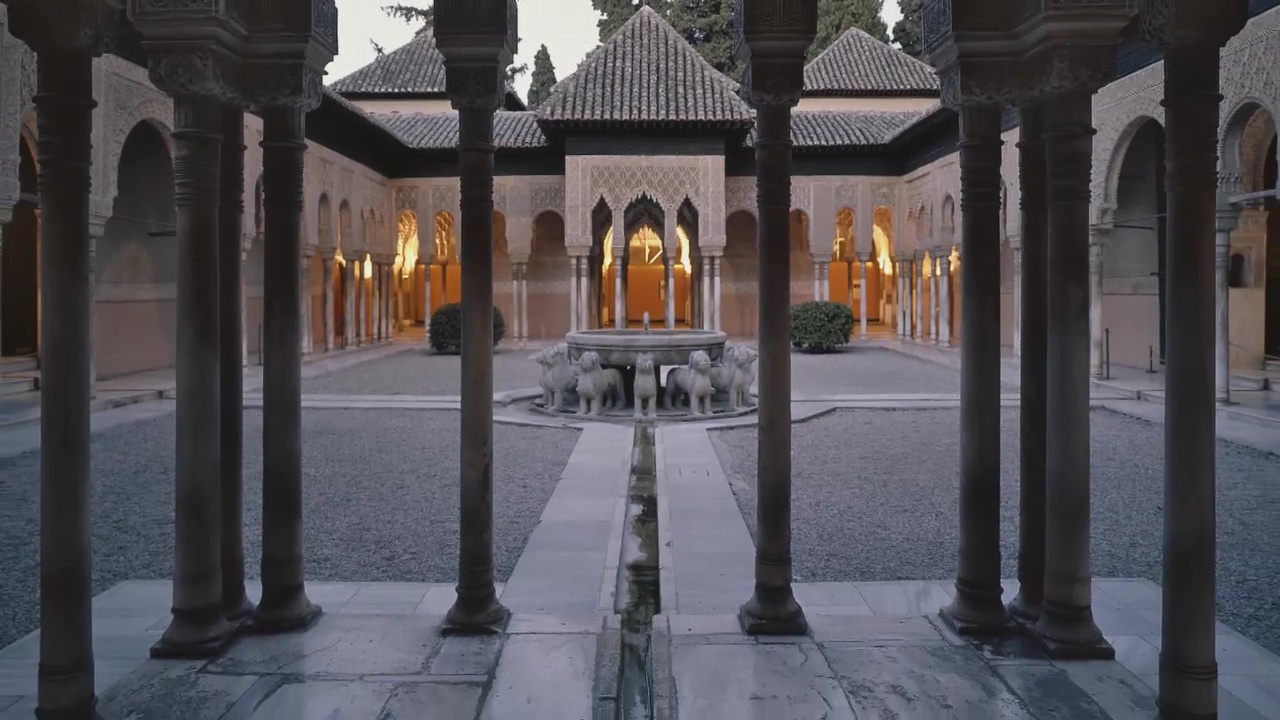Den "glücklichen Garten" nannten die Nasriden einst den Löwenpalast. Auch hier bildet das Wasser den Mittelpunkt. Vier Kanäle teilen den Hof. Sie könnten symbolisch für die vier Flüsse des Paradieses stehen - im Koran beschrieben als Ströme, die Wasser, Milch, Wein und Honig führen. Neben den Kanälen wuchsen einst Orangenbäume - und auch im Paradies erwarten den Gottesfürchtigen Früchte und Schatten. Der "Garten des Glücks" ist also ein Vorgeschmack auf das Paradies im Hier und Jetzt.